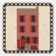 Este Pegatina presenta mi casa estilo Browntone dibujada con el ratón y cuenta con persianas rojas brillantes.