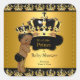 Pegatina Black y Gold Royal Little Prince Baby Shower. Un chico lindo con una corona de oro. Ducha de niño bebé para un niño afroamericano de etnia africana. Elegante Baby Shower para un niño. Una ducha de bebé muy linda.