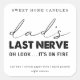 Usa la etiqueta "El último nervio de papá" para tu negocio de velas para crear un regalo de papá gracioso y lindo. Incluya el nombre de su empresa junto con cualquier otra información adicional que elija sobre su vela o su negocio. O usa los pegatinas para todos los papás de tu vida.