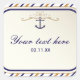 Cuadrada Elegante Ancla Náutica Pegatina de rayas azules de