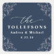 Cuadrada Elegante Pegatina cuadrado de la boda azul de la M