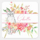 Cuadrada Elegante Pegatina personalizado de gato blanco