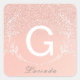 Cuadrada Elegante Rosa Purpurina de oro Monograma Pegatina
