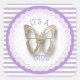 Lavanda morada y dorada Mariposa rayada Es un Pegatina chica lindo para sellar sobres de invitación a la ducha de bebé o bolsas de goodie.