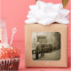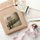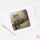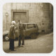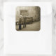 Pegatina cuadrado de una foto sepia de dos ancianos en Italia con una discusión en la calle con un auto en el fondo, creando así una escena como en una película de la mafia italiana del padrino.
