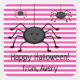 Pegatina de Halloween infantil personalizado - con fondo rayado rosa y blanco y arañas espeluznantes