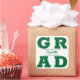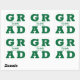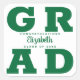 GRAD con letras verdes en negrita llena las esquinas de estos pegatinas cuadrados de grado. Felicitaciones por encima del nombre de su graduado y la Clase de abajo. VEA TODA LA COLECCIÓN de combinaciones de colores prehechas, invitaciones, placas de papel, servilletas, carteles y más en nuestra tienda.