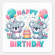 Cuadrada Feliz cumpleaños, Koala Bears Pegatina