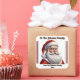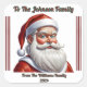 Un festivo pegatina cuadrado adorna un regalo bellamente envuelto, mostrando a un alegre Papá Noel. Los colores cálidos de las vacaciones crean un ambiente alegre, perfecto para difundir alegría.