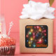 El pegatina cuadrado representa una corona adornada con bombillas multicolores y un superpuesto de texto que dice: "Feliz Navidad". Las esquinas biseladas mejoran la vida del pegatina (adherencia) al reducir la tendencia a la infiltración. Disponible en hojas de 6 (seis) pegatinas de 3" o 20 (veinte) pegatinas de 1 y 1/2".