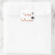 Qué gran manera de terminar con esas bolsas de goody pero con un pegatina divertido. Este pegatina dice Feliz Halloween con una telaraña y una araña tonta colgando de ella. No da miedo, solo es lindo y perfecto.