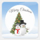 Si te gustan los hombres de nieve, entonces te encantará esta bonita escena de nieve del invierno con dos hombres de nieve y un árbol de Navidad. Personalice este pegatina con sus propias palabras o compre con el saludo "Feliz Navidad" Elija entre una variedad de tipos de letra y colores para su texto. Pegatinas una buena manera de sellar sus sobres o de agregarlos a bolsas de regalo y latas de galletas.
