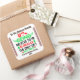 Un colorido pegatina cuadrado alegra un regalo bellamente envuelto. Adornado con textos divertidos y decoraciones de vacaciones, expresa la alegría de dar.