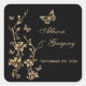 Cuadrada Floral de oro negro con mariposas Pegatina