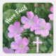 Cuadrada Flores rosas y cruces tienen Pegatina de fe