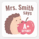 Un lindo ilustracion de un erizo abrazando una manzana y plantillas de texto que puedes personalizar con el mensaje para animar a los niños a un esfuerzo A+! Perfecto para que los profesores elogien a los estudiantes.