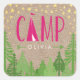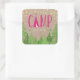 Pegatina rústico-moda personalizada para un fiesta temático "Glamping" con una carpa en un bosque de árboles bajo falsas estrellas de oro Relieve metalizado.