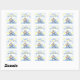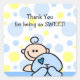 Bebé gateo lindo con fondo de un punto polka azul y amarillo Gracias pegatina. Invitaciones coincidentes y sellos postales disponibles ©jdsclipart