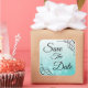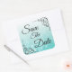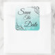 Cuadrada Guardar la fecha Verde azulado Pegatina del Boda d