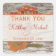 Las hojas secas del otoño y las flores prácticamente saltan del fondo de grano de madera en este favor de la boda en otoño gracias pegatina y/o sello para sobres. **NOTA, si cambia la forma del pegatina por sí mismo, o si cambia las fuentes, o el tamaño del tipo de letra, parte del diseño y/o el texto puede ser cortado. Todo se imprimirá como lo ves en tu monitor. No voy a ver los cambios que hagas, y Zazzle NO corregirá nada (tipografía, desalineación, etc.). El texto es todo personalizable. Si necesita ayuda con este producto, por favor envíeme un correo electrónico ANTES de realizar su pedido. Si necesita cualquier otro elemento coincidente, envíe su solicitud a niteowlstudio@gmail.com.