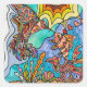 Cuadrada Hummingbird Pegatina de arte de reflexión de peces