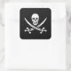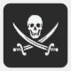 Pegatina cuadrado para igualar nuestra invitación "Jolly Roger" con una imagen de un blanco Jolly Roger en negro. Texto opcional. Ver toda la colección de Pegatinas de Shipwreck en INVITES | Sección de pegatinas y etiquetas.