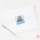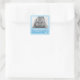 pegatina de personalizable con foto e información de nacimiento. Puntos de polka azules y blancos