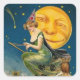 Cuadrada La luna pasada volando bruja - Pegatina de Hallowe