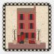 Este Pegatina presenta mi casa de estilo Browntone dibujada con el ratón, con postigos rojos brillantes y esta versión tiene árboles en la parte delantera.