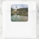 Cuadrada Lago Bohinj con iglesia en el pegatina de Esloveni