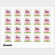 Un pegatina de sello para sobres con un ilustracion de lechuza rosa con el vientre de patchwork. Owl lleva gafas de sol de ojos de gato rosado y una rosa rosa detrás de la oreja.