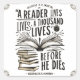 Un lector vive mil vidas antes de morir - George R.R. Martin Muestra tu amor por los libros con este pegatina bellamente diseñado que presenta una de las citas literarias más icónicas. Este pegatina duradero, hecho con vinilo impermeable de alta calidad, es perfecto para decorar portátiles, lectores electrónicos, portátiles, botellas de agua y más. ¡Una obligación para los amantes de los libros, escritores y fanáticos de las fantasías—llevar la magia de leer donde quiera que vayas! 📚 ✨
