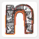 Cuadrada Letra inca N Pegatina cuadrado de letras artística