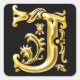 Cuadrada Letra J mayúscula inicial Pegatina en oro