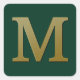 Letra de oro mayúscula M en letra falsa de bronce dorado. El aspecto metálico se consigue utilizando resaltes y sombras en tonos amarillos, marrones y grises. Se establece en verde oscuro sólido y se puede personalizar con el color de fondo de su elección.