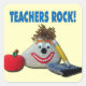 Pegatinas educados con un diseño fotográfico de una roca sonriente decorada acompañada de un cuaderno de fieltro, lápiz y manzana, que dice "¡Rock de los profesores!"