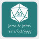 Este profundo pegatina verde azulado presenta una mordida blanca de veinte lados, acentuando el texto que se puede personalizar para tu evento especial y compartiendo tu pasión geek. Estos pegatinas son perfectos para decorar bolsos de regalo en bodas o favores de fiesta para cualquier evento especial o para ser usados como pegatinas de última hora que sus invitados pueden poner en sus colecciones de keepsake. Asegúrese de consultar los demás productos de la Moda Tabletop en Verde azulado para crear una verdadera coordinación para su evento.