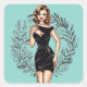 Cuadrada Moda Vintage LBD Ilustracion Pegatina