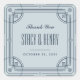 Este pegatina de agradecimiento cuenta con un marco vintage de inspiración Art Déco, y es el sello perfecto para las celebraciones nupciales.