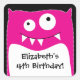 Cuadrada Monstruo rosa Bash Pegatina de la plaza de cumplea