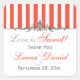 Este naranja cuadrado en forma de tangerino y bufé de caramelos a rayas blancas favorece la boda gracias a pegatina o sello para sobres, tiene un pergamino gris plateado ornamentado por encima que coincide con la invitación a la boda que se muestra a continuación, y es una forma perfecta para que los clientes cierren sus bolsos de postre tipo bufé de caramelos. Si necesita cualquier otro elemento coincidente, envíe un correo electrónico a niteowlstudio@gmail.com.
