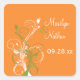 Cuadrada Naranja Floral blanca verde 1,5" Boda Pegatina