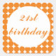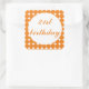 Cuadrada Naranja pegatina cuadrado de texto de 21 cumpleaño