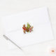 Pegatina cuadrado con una hermosa escena de Navidades con Santa Claus, su bolsa de Navidades, un trineo rojo lleno de cajas de regalos de Navidades, dos renos y un pino.