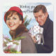 Navidades pegatina de compras. Pareja retro de los años 60 llevando regalos de Navidades. De VIRGINIA5050 en www.zazzle.com/virginia5050.