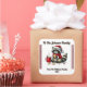 Un alegre mapache vestido con una bufanda de invierno disfruta de las vacaciones junto a una taza humeante. Este colorido pegatina le agrega un toque festivo a la venta de regalos y captura la esencia de la alegría, la risa y el espíritu familiar durante las celebraciones de los Navidades.