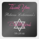 Esta estrella cuadrada de 1.5" de diámetro, negra, plateada y rosa de Bat Mitzvah Star of David gracias pegatina y/o sello para sobres coincide con la invitación de Bat Mitzvah que se muestra a continuación. Puedes eliminar el texto de Bat Mitzvah, el texto de agradecimiento y/o la Estrella de David. El otro texto es personalizable, y también puede seleccionar el pegatina de tamaño más grande de 3".