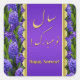 Noble y elegante ilustracion de Año Nuevo persa: Borde de oro púrpura en un campo de flores de jacinto con deseos de Año Nuevo en inglés y farsi.