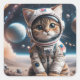Cuadrada Pegatina astronauta de gato alienígena espacial