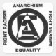 símbolo a-e, "anarquismo, igualdad, lucha contra el racismo, lucha contra el sexismo"